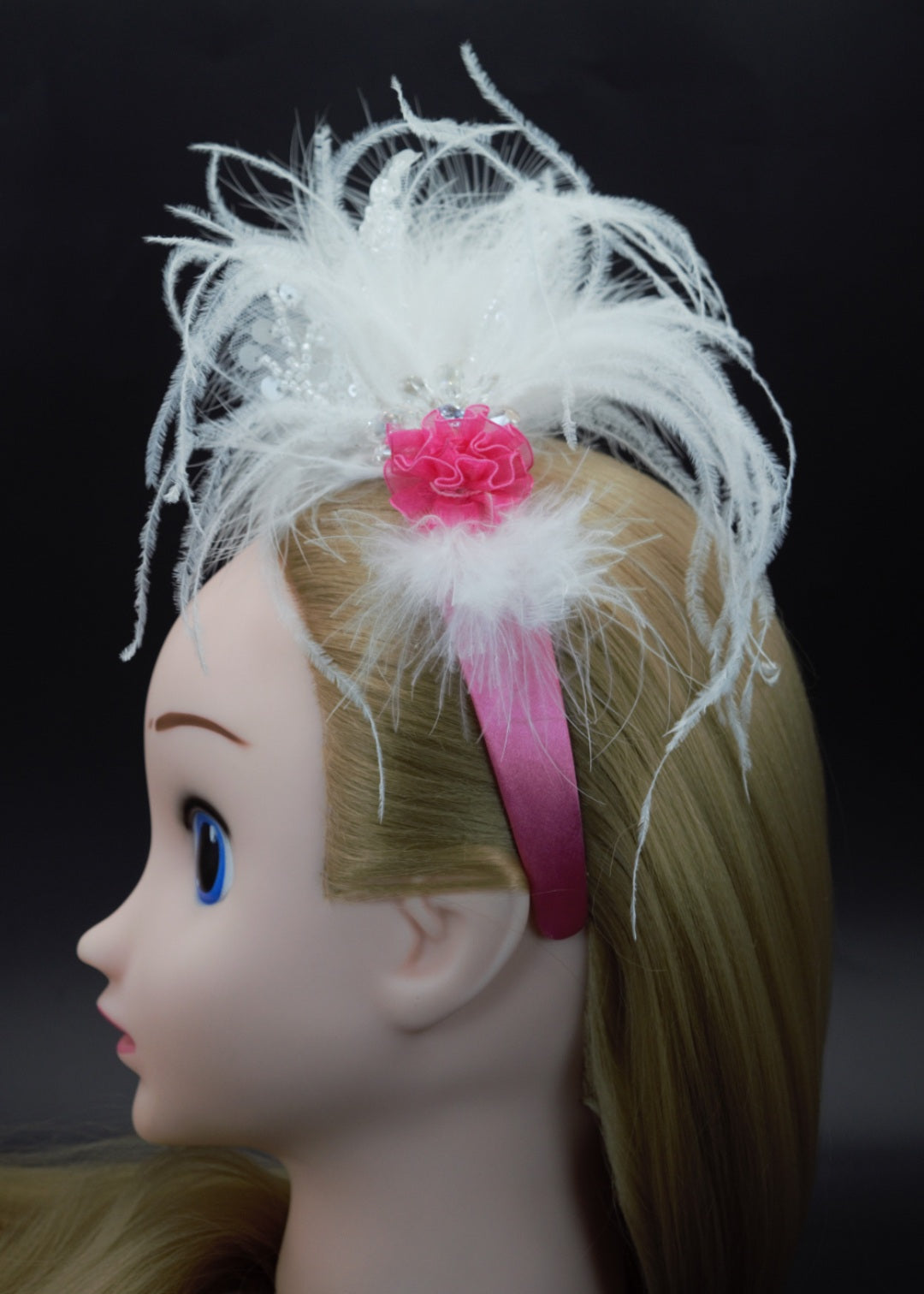 This handcrafted alluring vintage inspired headband is absolutely stunning on any person of any age. This artisanal pink satin headband with a bright pink tulle fabric flower and gleaming white faux feathers will have you stand out in any crowd. This is the perfect hair accessory for any social gatherings, parties, weddings, or just because!!