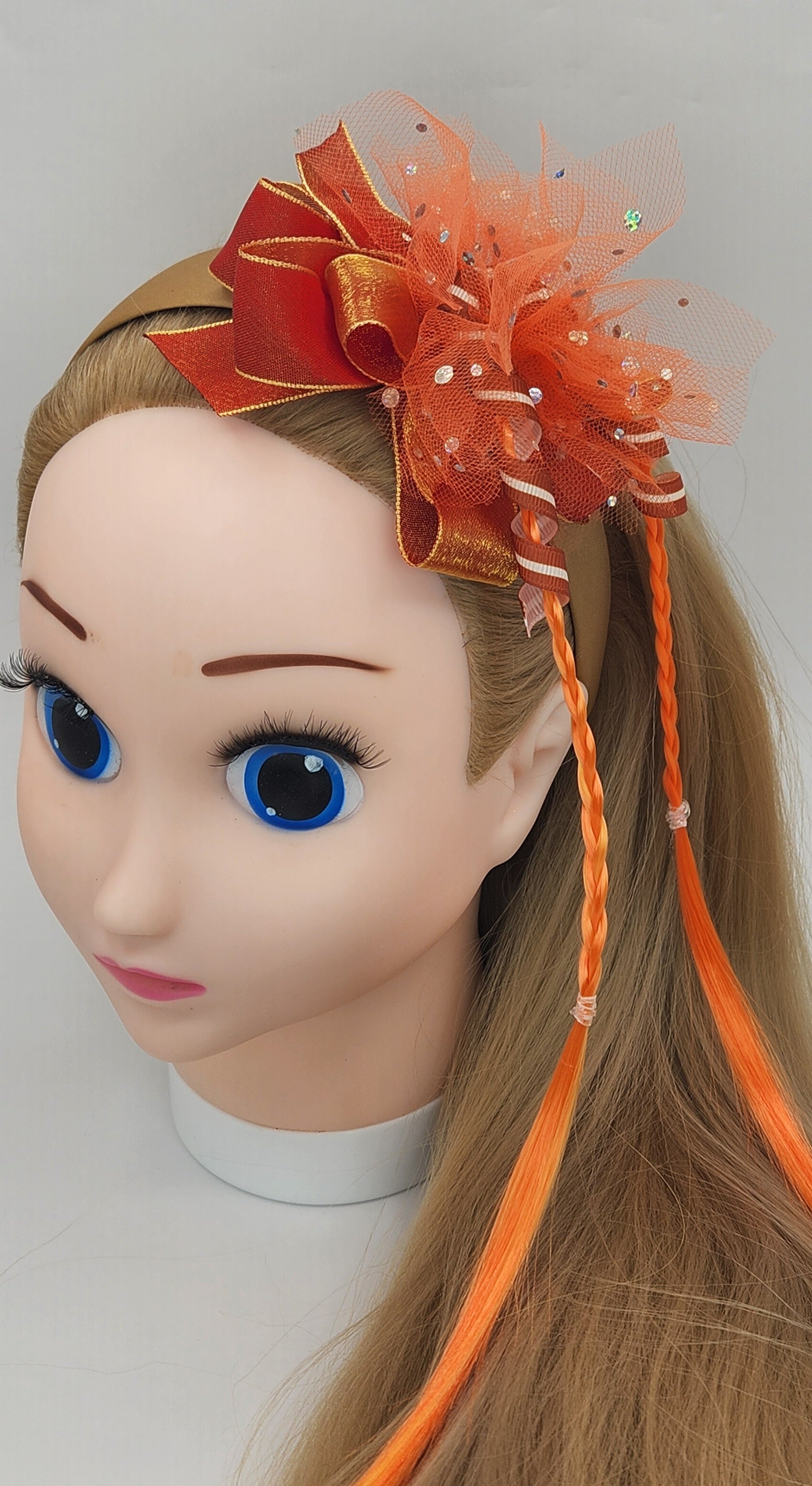 Amber Headband w/Ribbon & Orange Artificial Hair