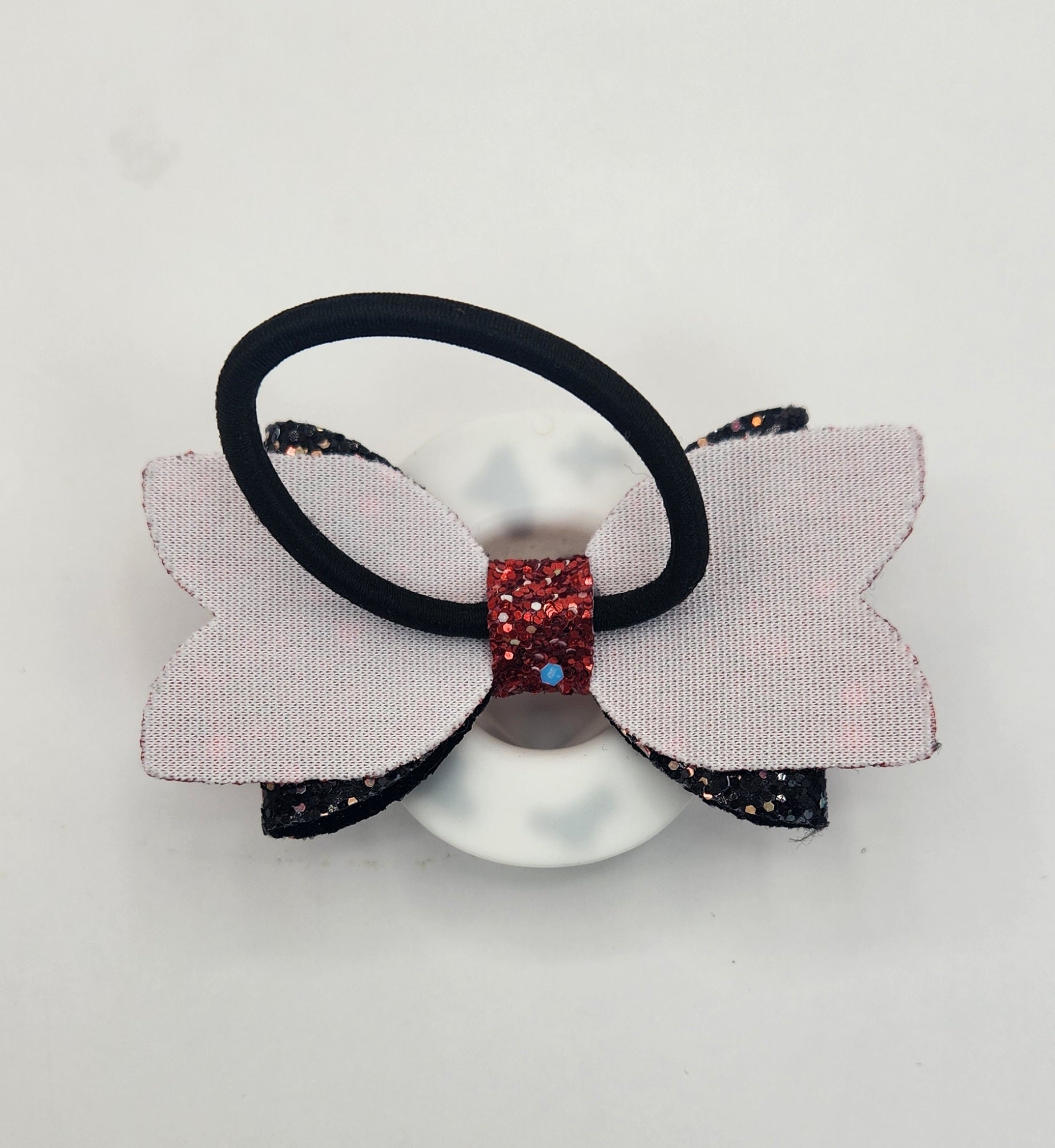 This racey red and black cloth hair bow with bright chunky glitter and a cow print cowgirl hat centerpiece will have ya'll looking sweeter than a cherry pie fresh from grannies kitchen on the homeland! Handmade with peace, love and purpose 😀!Â
