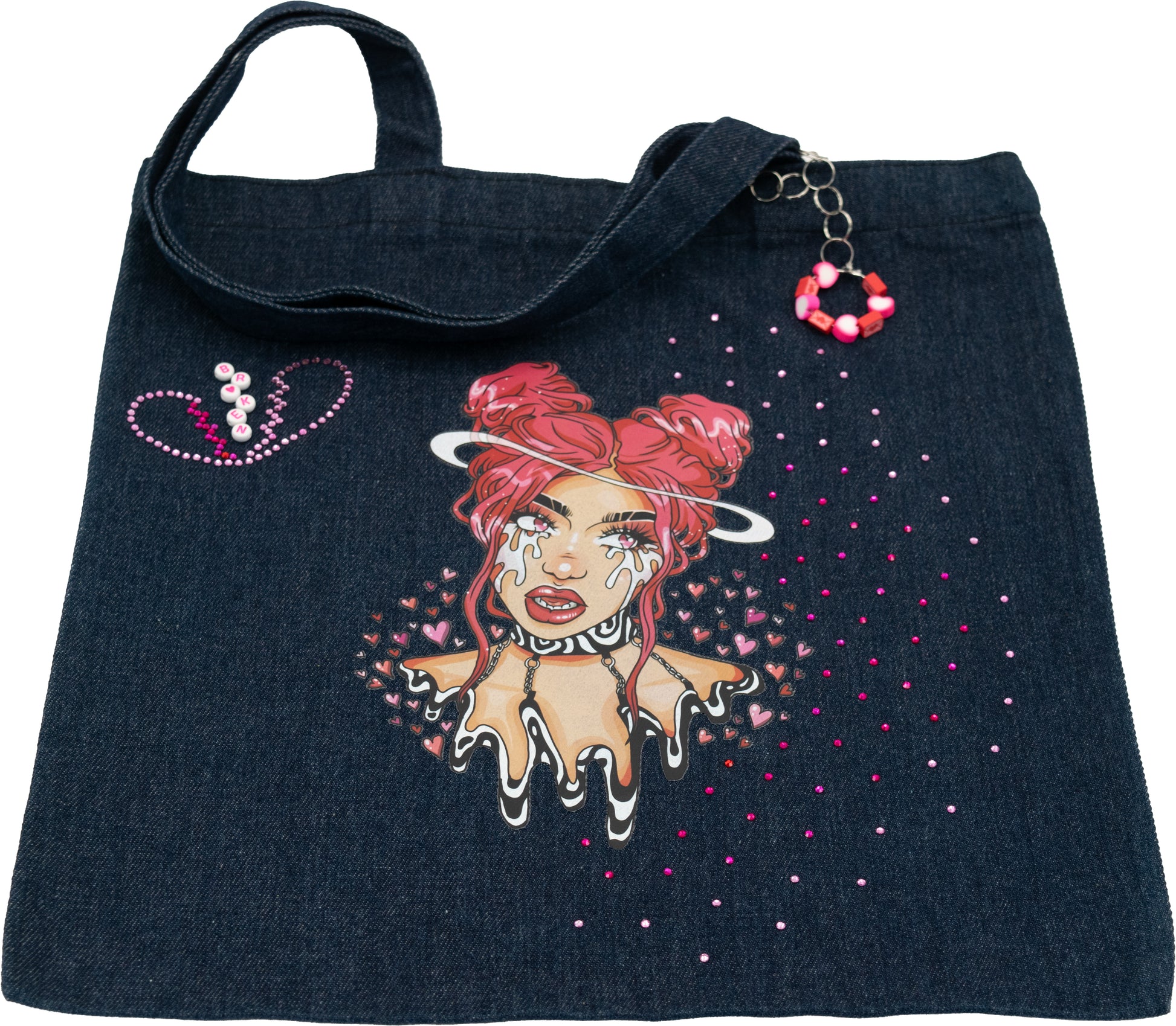 This tote is perfect for that high school student or college love distressed girl with a broken heart. The sexy cool pink hair female pattern on the tote with tears will show the universe how it looks to be broken. The bag has an open top for easy accessibility and great for holding books or notebook with two shoulder straps for comfort.