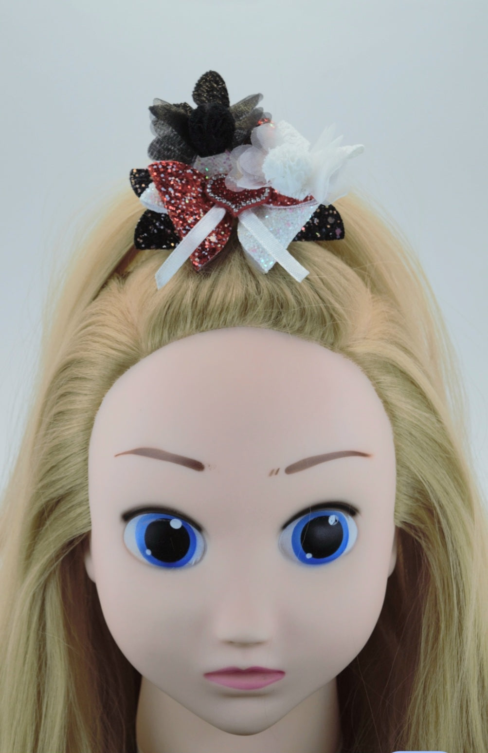 This hair bow is attached to a steel alligator clip with teeth for better hair gripping.