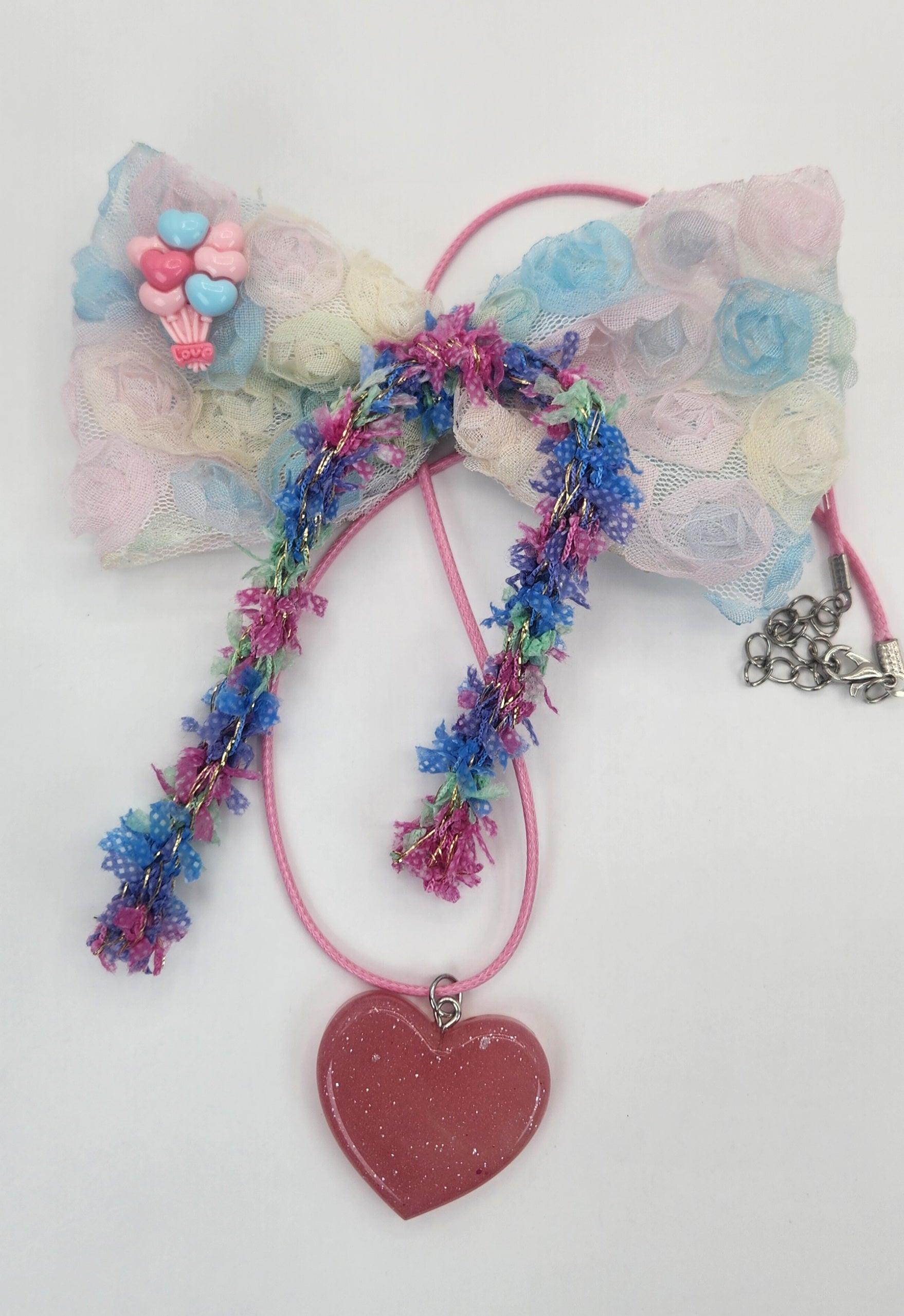 Pretty Girl Hair Bow and Heart-shaped Necklace Set