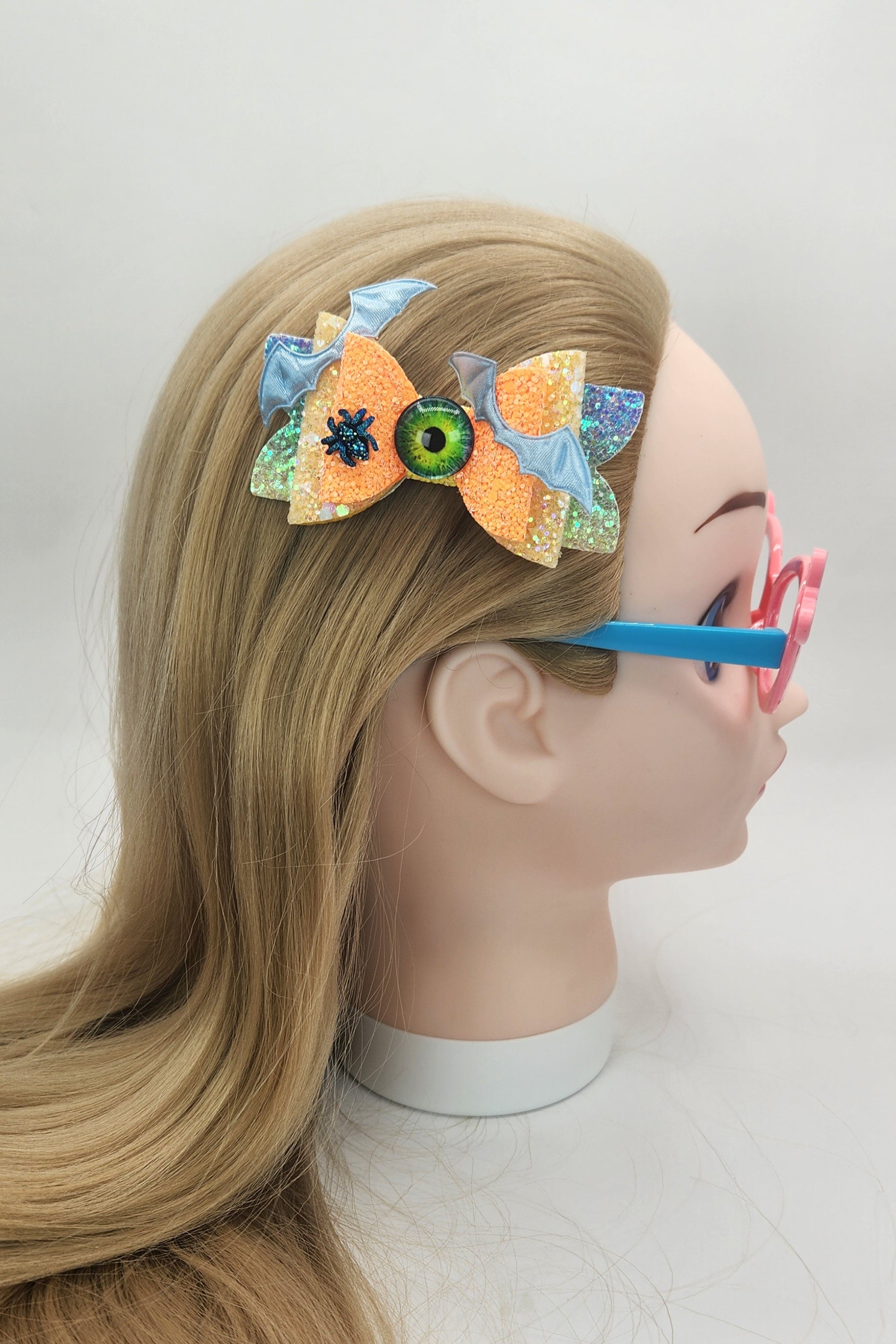Shimmery Multicolored Hair Bow with Eyes and Bats
