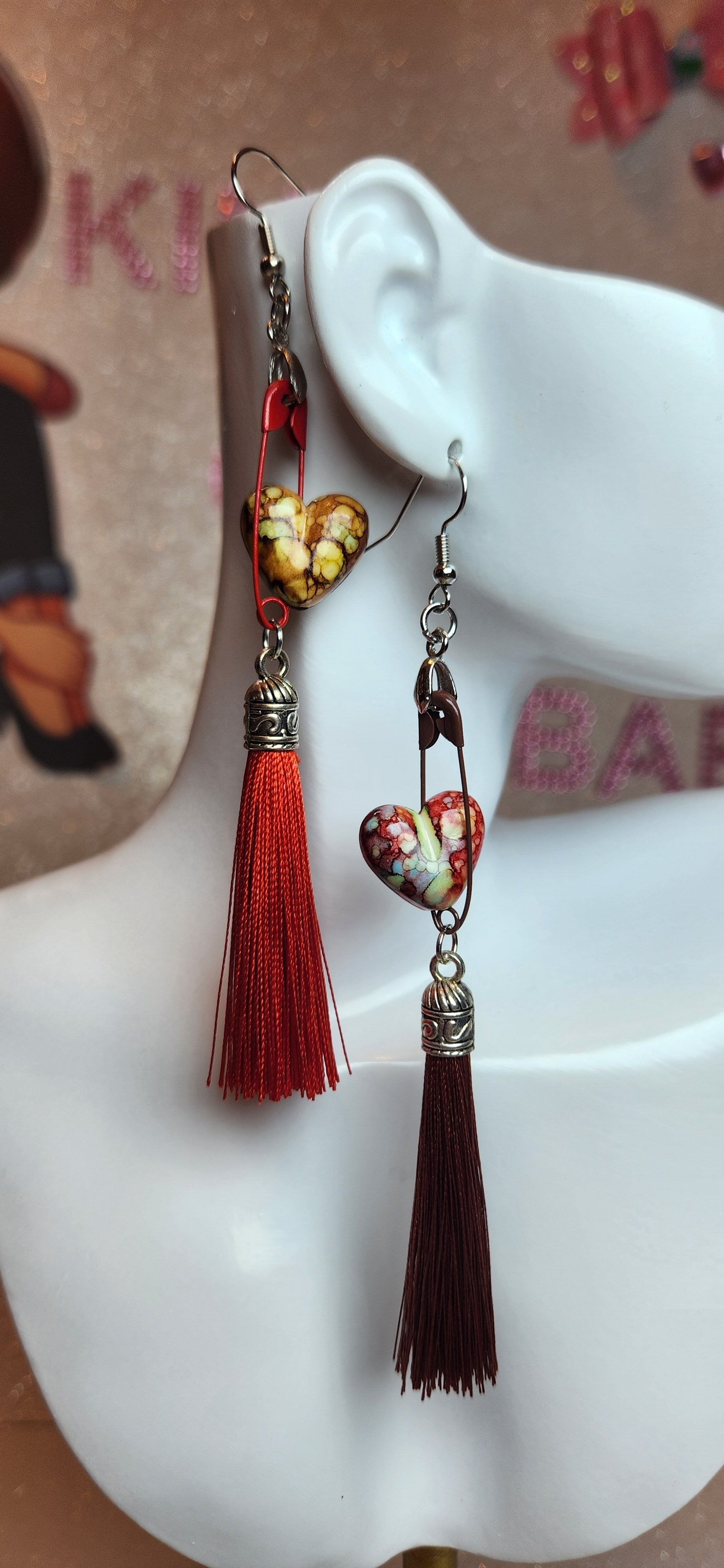 Mix-Matched Pin Thru the Heart Earrings w/Tassel
