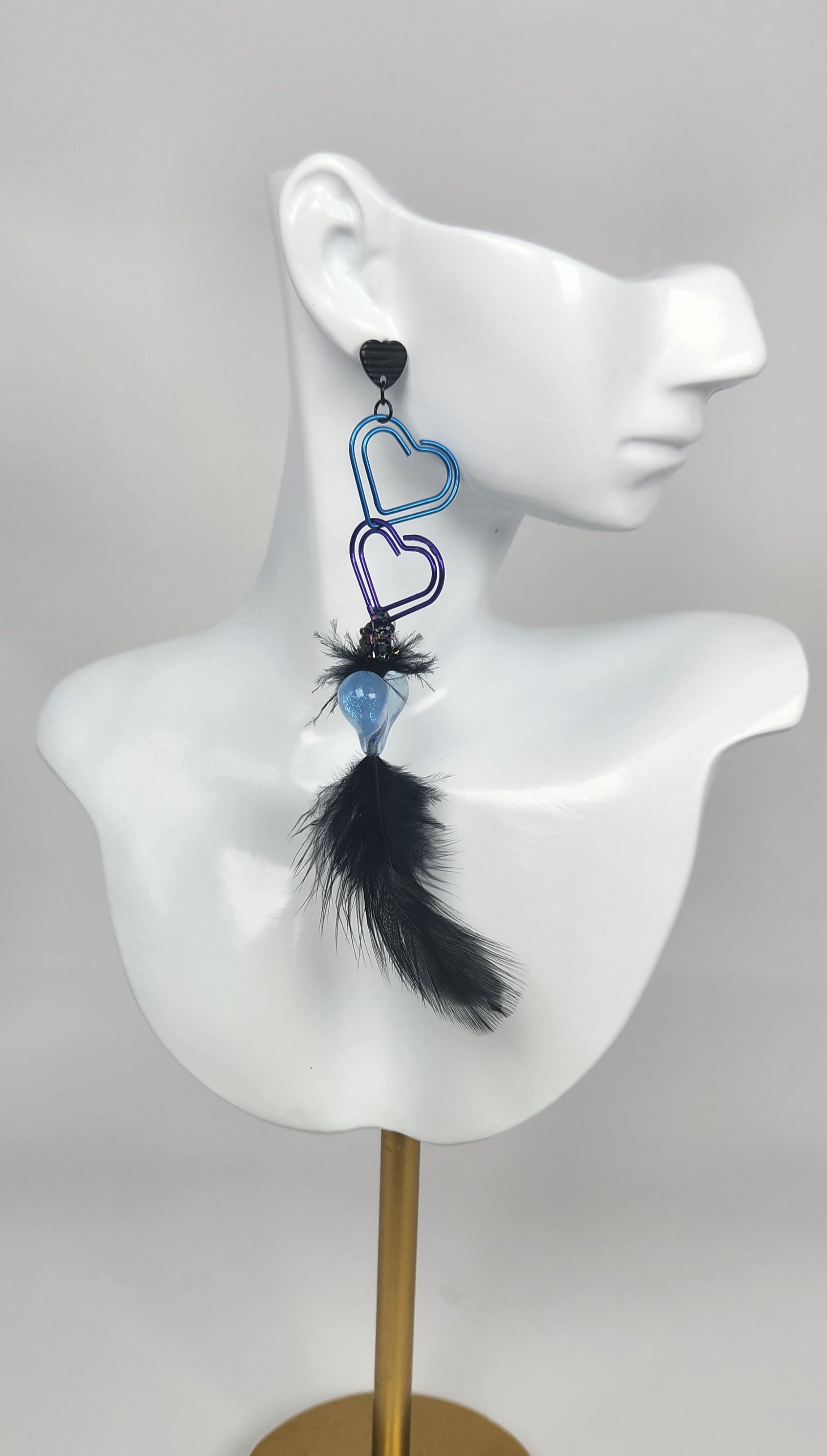 This sexy stacked four heart earring is perfect for a day or evening wear. These earrings give off multiple vibes... The dark colors give off a sophisticated powerful appearance, but the hearts say open and sensitive. Add a feather to it and it says confident and free spirited! These earrings will show the many sides of you!